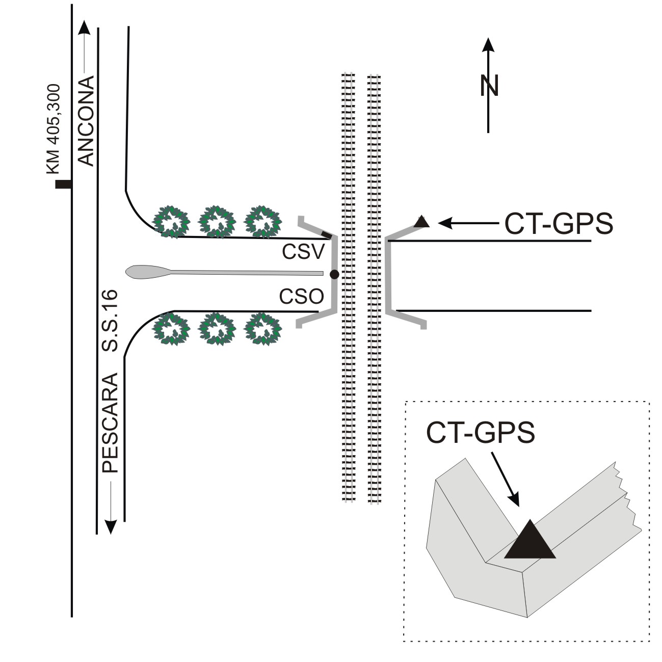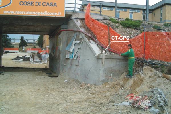 Centrino infisso sulla spalla del ponte in cemento armato del sottopassaggio ferroviario.
