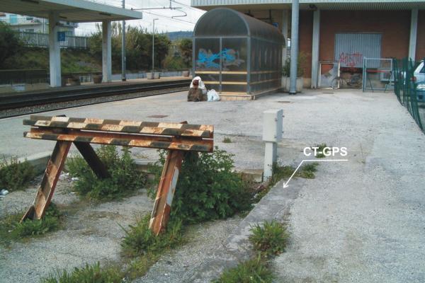| materializzazione | Centrino infisso su un muretto in calcestruzzo in prossimità di un binario morto a sud della stazione ferroviaria. |