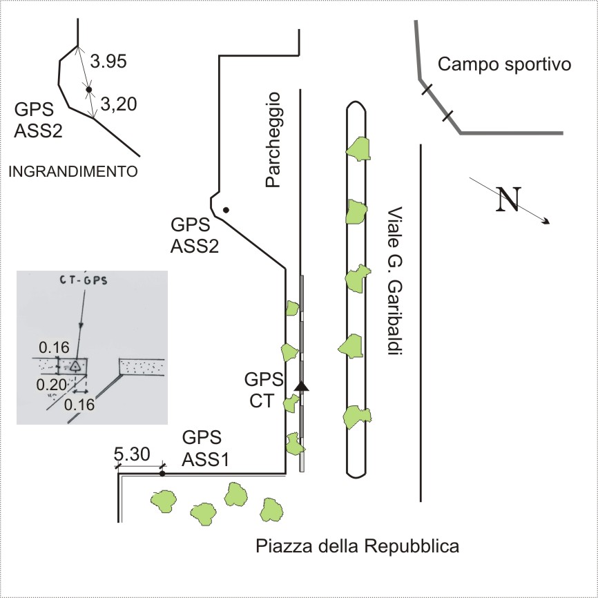 | Materializzazione | Centrino in acciaio inox del tipo "GPS D" infisso sul pavimento di un terrazzino prospiciente il parcheggio ubicato di fronte all'entrata dello stadio comunale. |