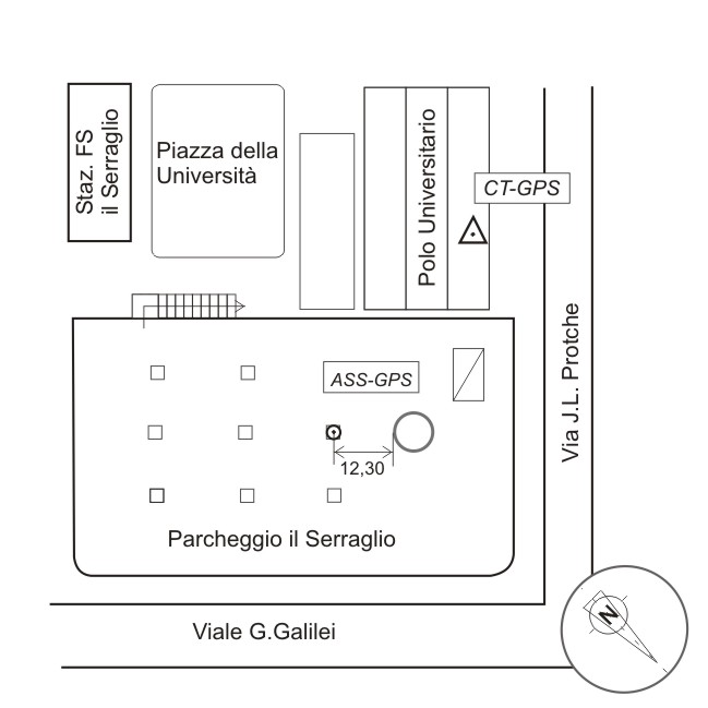 Centrino del tipo "GPS D" infisso sulla sommità del basamento parallelepipede in mattoni presente sulla copertura del parcheggio sotterraneo del Serraglio.