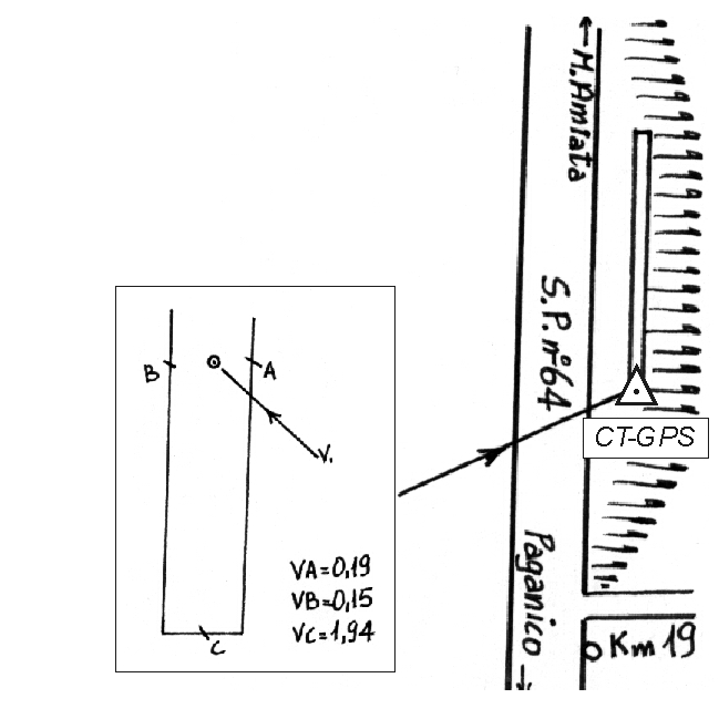 | materializzazione | Centrino inox infisso sul muretto a lato della SP 64, all'altezza del Km 19,200. |