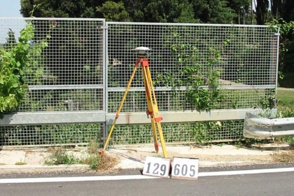 Centrino inox infisso sullo spigolo NE del marciapiede del cavalcavia n° 300 sull'autostrada A1, all'altezza del Km 414 della stessa.