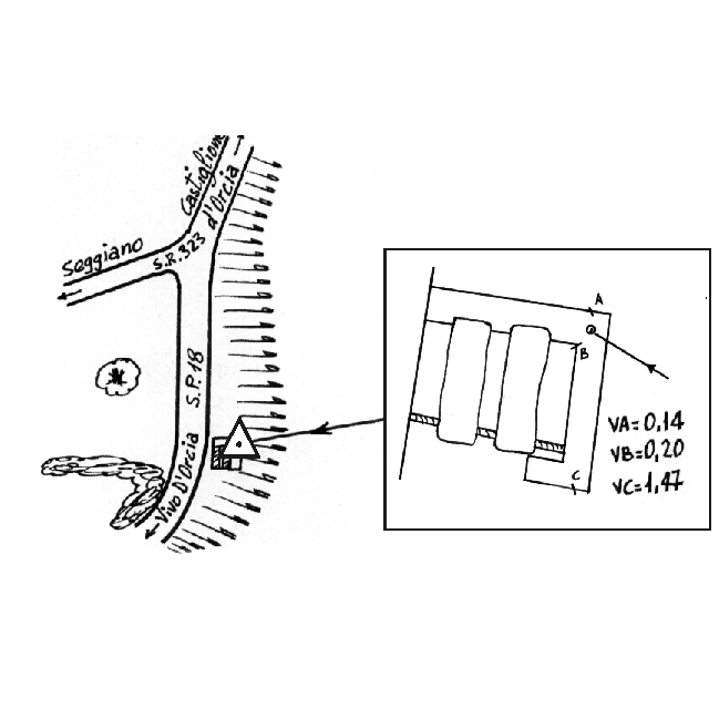 Centrino inox infisso sulla chiavica a lato della SP 18 del Monte Amiata, in prossimità del bivio con la SR 323 del Monte Amiata.