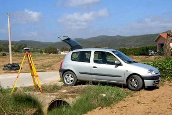 Centrino cementato su spalletta di un accesso ad un campo.