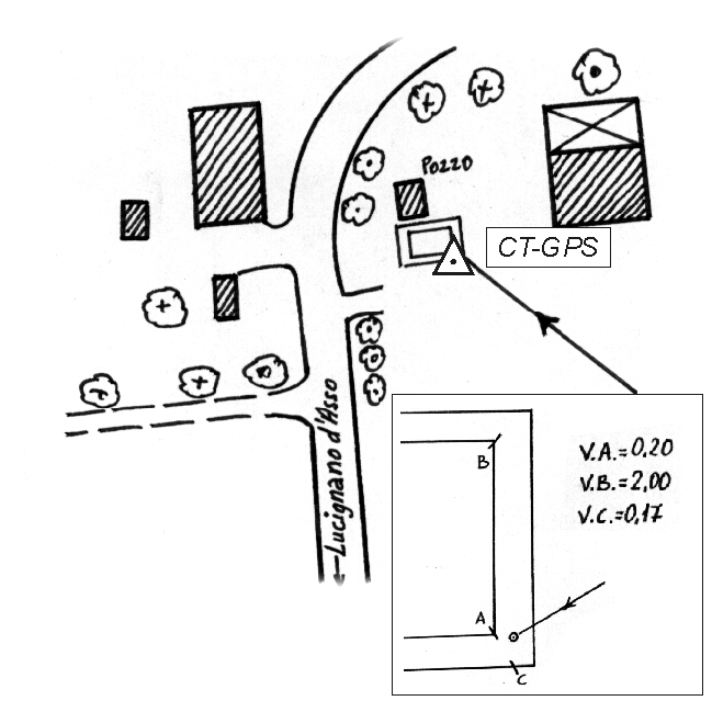 | materializzazione | Centrino inox infisso sullo spigolo della piattaforma a lato della strada comunale n. 30 che da Lucignano d'Asso conduce a S. Giovanni d'Asso. |