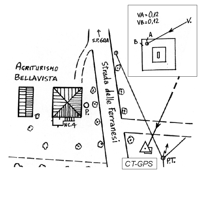 | materializzazione | Centrino inox infisso sullo spigolo di un tombino in cls situato in prossimità di un grosso palo deviatore di Linea MT, all'altezza dell'Agriturismo Bellavista. |