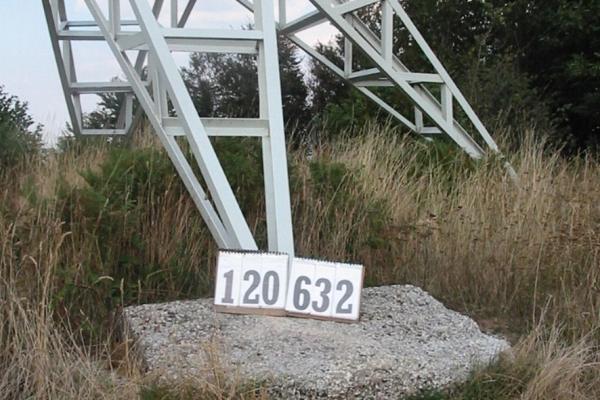 Centrino inox infisso sul basamento della croce in ferro ubicata sul Poggio di Montieri.