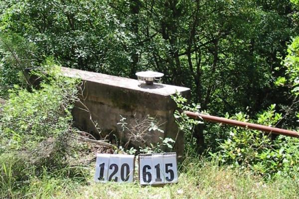 | materializzazione | Centrino inox infisso sulla sommità del parapetto a valle della strada sterrata che corre parallela alla riva destra del fiume Merse, denominata "Strada dell'alta Merse". |
