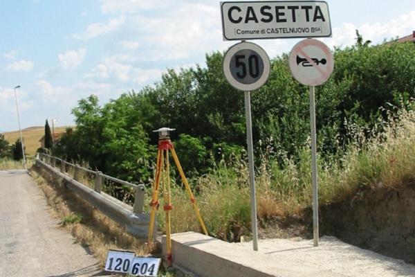 | materializzazione | Centrino inox infisso sul cordolo in cls all'imbocco della strada in costruzione fra il raccordo autostradale e la ferrovia. |