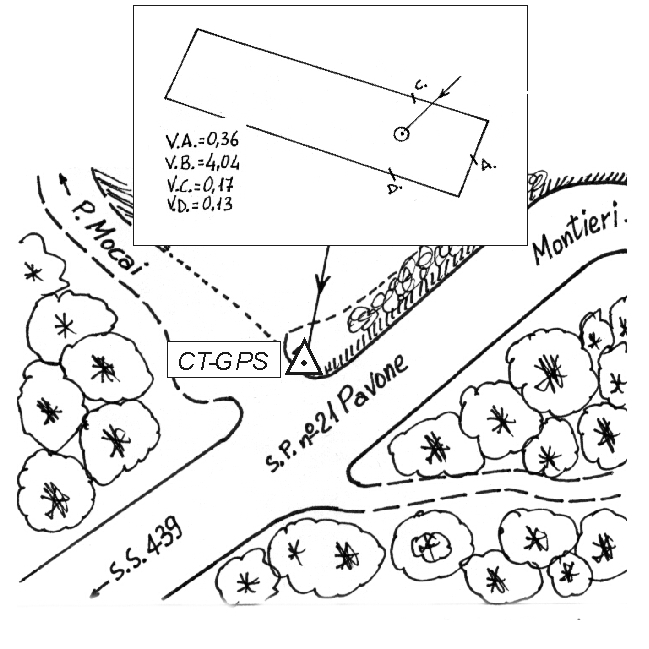 | materializzazione | Centrino inox infisso su cordolo in cls situato all'imbocco della campestre che conduce a Pod. Mocai, al Km 9,000 della SP 21Pavone che da Montieri conduce alla SS 439. |