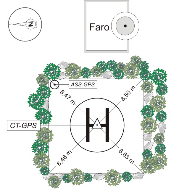 | materializzazione | Centrino in acciaio inox del tipo "GPS C", infisso al centro della piazzola per atterraggio elicotteri posta nelle vicinanze del faro. |