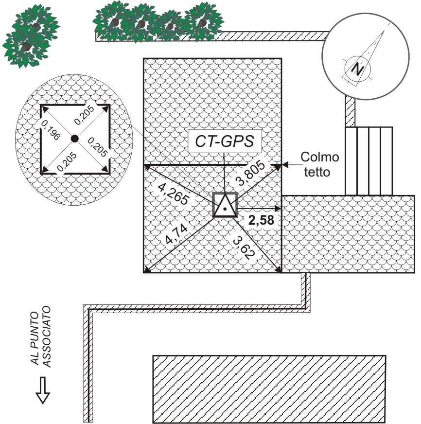 | materializzazione | Centrino in acciaio inox del tipo "GPS C", infisso in asse del pilastrino a sezione quadrata posto sul tetto dell'edificio dell'Areonautica Militare ubicato sulla cima del monte denominato "Il Telegrafo". |
