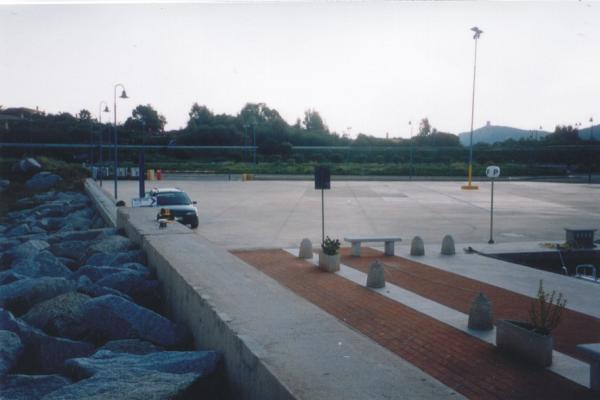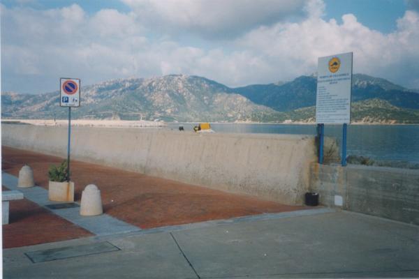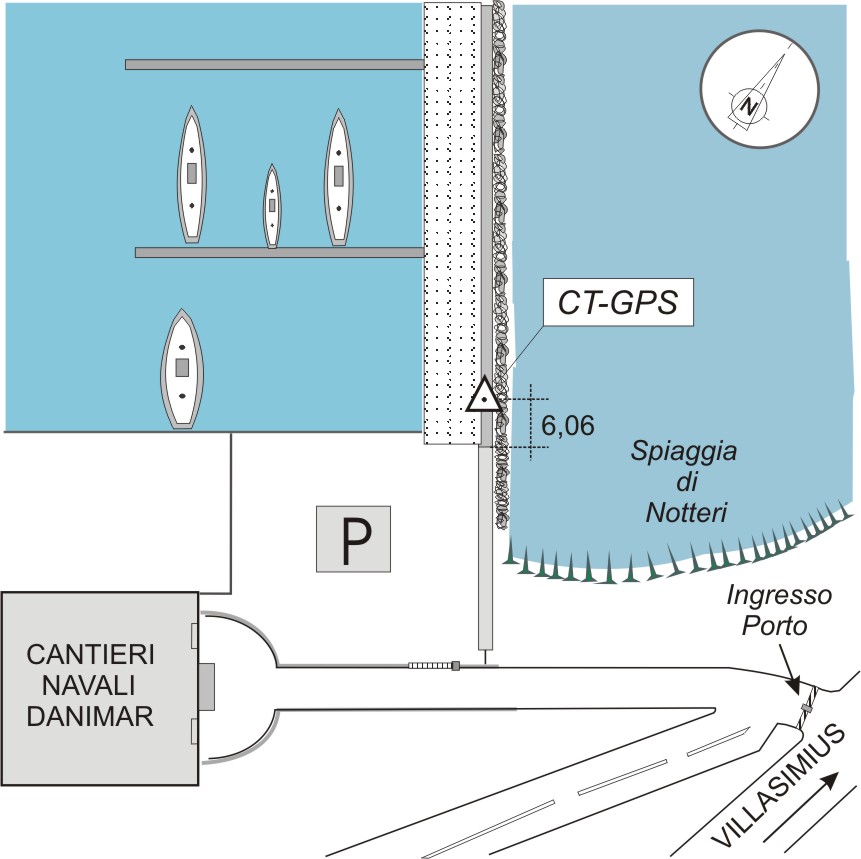 Centrino in acciaio inox del tipo "GPS C", infisso sulla sommità del molo di levante del porto fra l'inizio della banchina e la spiaggia di Notteri.