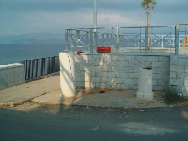 | materializzazione | Bullone avvitato su contrassegno orizzontale con filettatura 5/8, cementato sul pilastrino in cemento armato, posto su soletta in cemento fra la strada e la terrazza prospicente il mare. Il punto parte del poligono materializzato dall'IGM per il "Controllo Geodetico dello Stretto di Messina" denominato "Calabria I". |