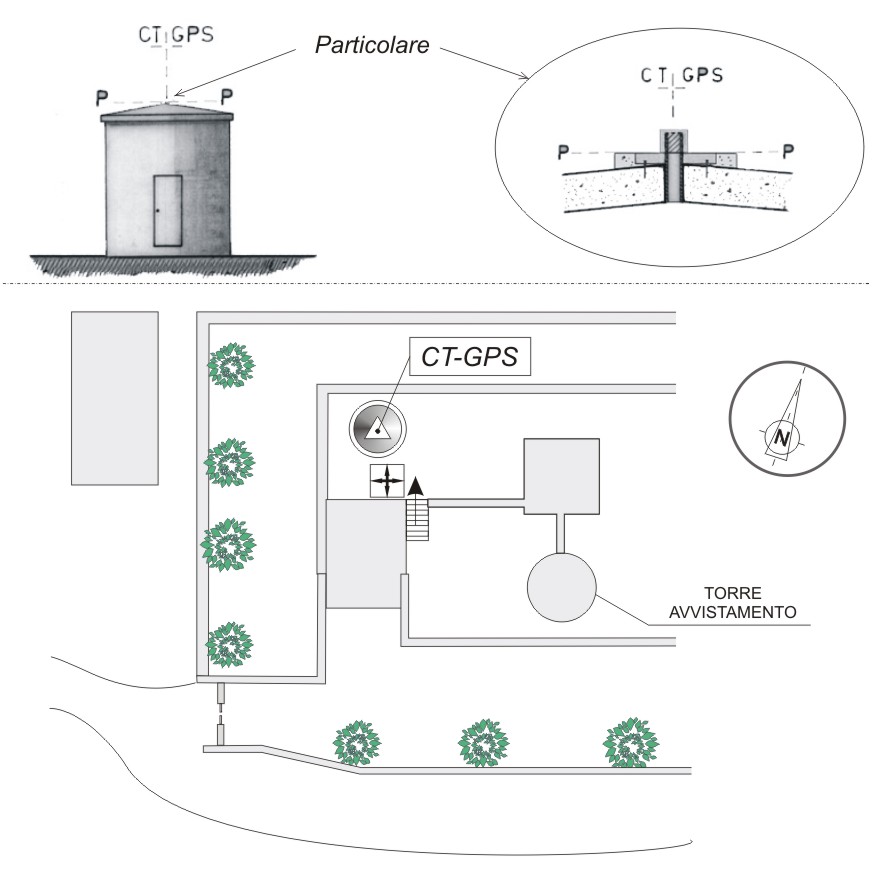 Piastra in acciaio munita di vite autocentrante, protetta da un tappo in acciaio, cementata sulla soletta di copertura del casotto a pianta circolare, facente parte del poligono materializzato dall'IGM per il "Controllo Geodetico dello Stretto di Messina" (vertice n°6). Il casotto è ubicato all'interno del comprensorio dell'ex Forte Spuria.