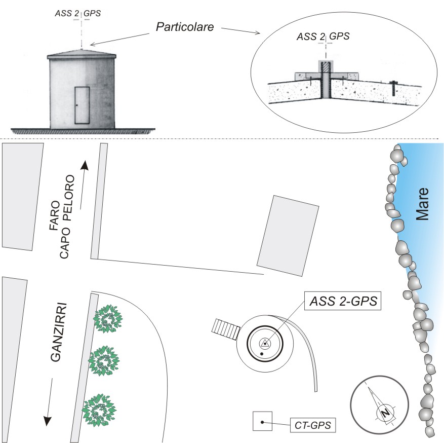 | materializzazione | Piastra in acciaio munita di vite autocentrante, protetta da un tappo in acciaio, cementata sulla soletta di copertura del poligono materializzato dall'IGM per il "Controllo Geodetico dello Stretto di Messina" (vertice n° 7). Il casotto è ubicato in prossimità (100 m) del pilone del vecchio elettrodotto dello Stretto di Messina. |