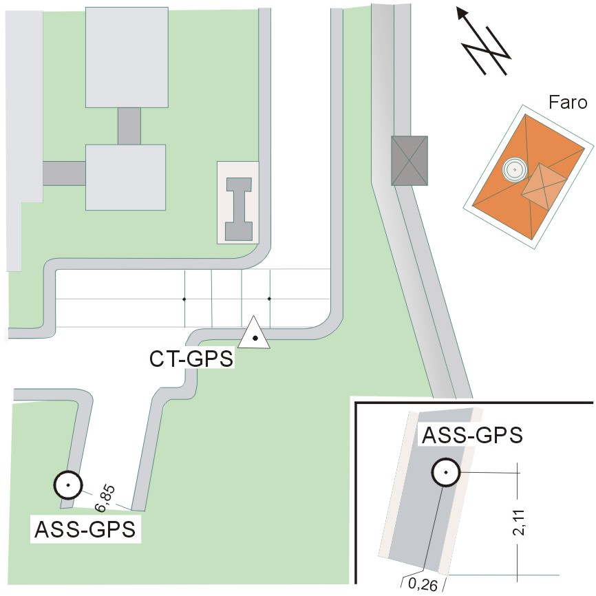 Centrino in acciaio inox del tipo GPS "D" infisso sulla soletta del marciapiede sinistro al termine della strada a sud dell'ala nuova del penitenziario.