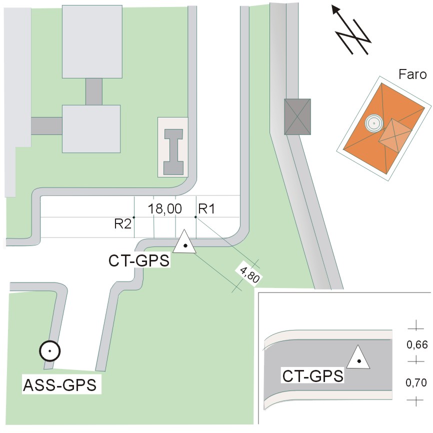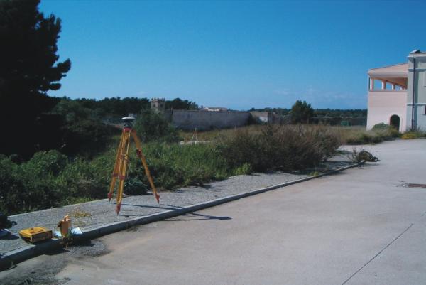 | materializzazione | Centrino in acciaio inox del tipo GPS TIPO "C" infisso sulla soletta del marciapiede a contorno della strada che corre internamente sotto le mura del penitenziario, in prossimità della centralina termica dell'ala nuova. |