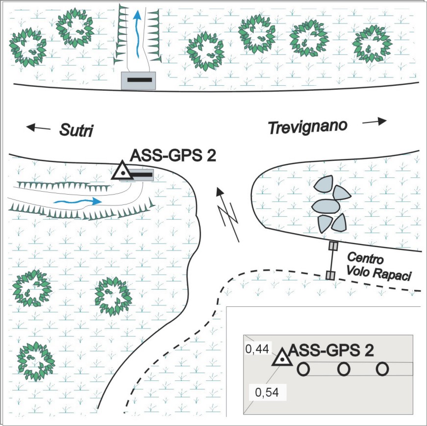 | materializzazione | Centrino Gps di Tipo “D” infisso sull’estremità, volta verso Sutri del ponticello Sud, posto, subito dopo l’accesso al Centro Volo Rapaci, venendo da Trevignano Romano. |