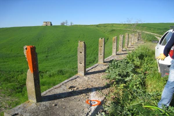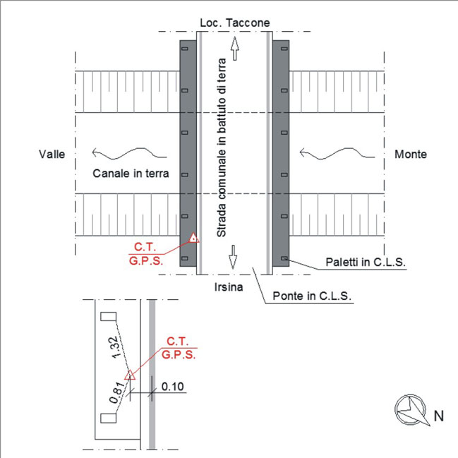 | materializzazione | Centrino metallico orizzontale di tipo chiodo con rondella ARPAB Regione Basilicata infisso sulla soletta in C.L.S. lato sinistro a valle ponte. |