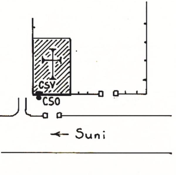 | Contrassegni | [{"simbolo_contrassegno":"P1","materializzazione":"Alla base della facciata della Chiesa, spigolo sinistro."},{"simbolo_contrassegno":"V1","materializzazione":"Sulla facciata, in corrispondenza del cso."},{"simbolo_contrassegno":"P1","materializzazione":"Contrassegno basso del C1. Alla base della facciata della Chiesa, spigolo sinistro."}] |