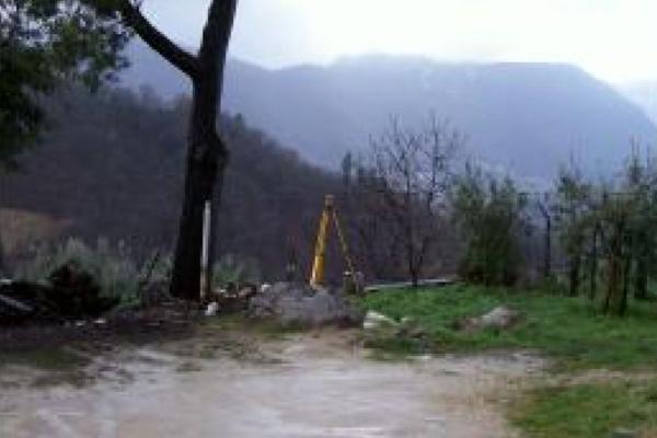 Centrino metallico infisso sulla sommità del muro di sostegno in calcestruzzo del piazzale di proprietà del civico 37, a Finocchieto.