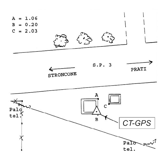 | materializzazione | Centrino metallico infisso sullo spigolo sud-est del pozzetto iin calcestruzzo in località Prati di Stroncone, al Km 10+800 della S.P. 63. |