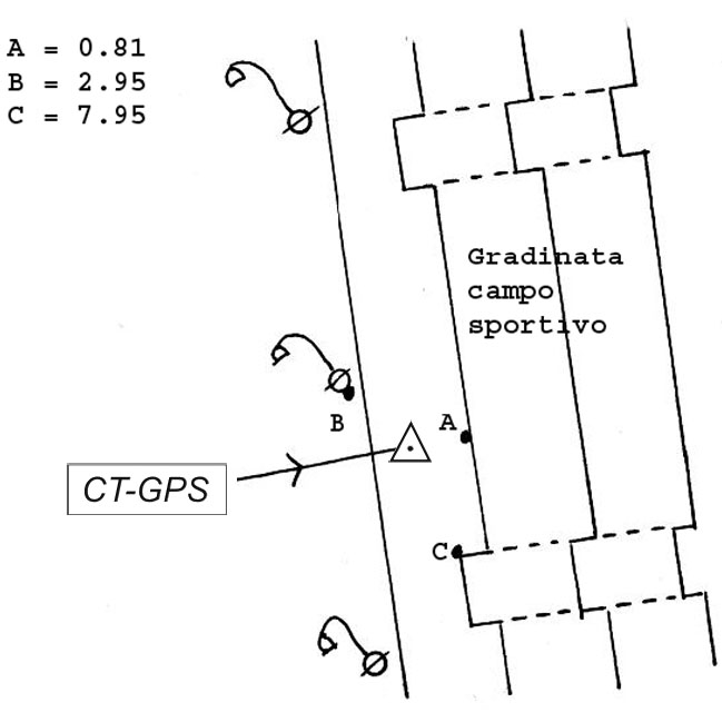 Centrino metallico infisso sul gradino in calcestruzzo più in alto della gradinata del campo sportivo in località "La Cavallerizza".