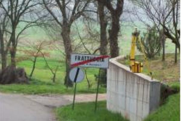 | materializzazione | Centrino metallico infisso sulla sommità del muro di sostegno all'interno dell'abitato di Frattuccia. |