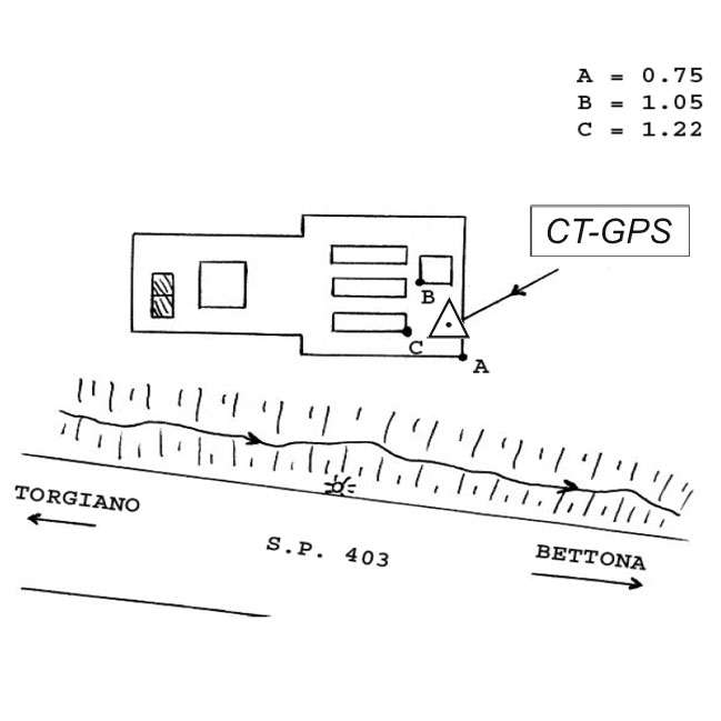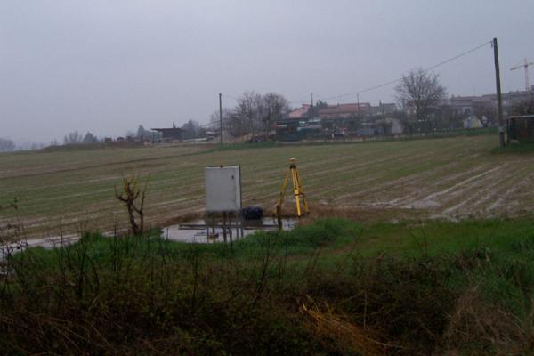 Centrino metallico infisso sullo spigolo sud-est del pozzetto in calcestruzzo gettato in opera dell'acquedotto comunale, in corrispondenza del Km 4+600 circa della S.P. 403 di Bevagna, in località Vencaiola.