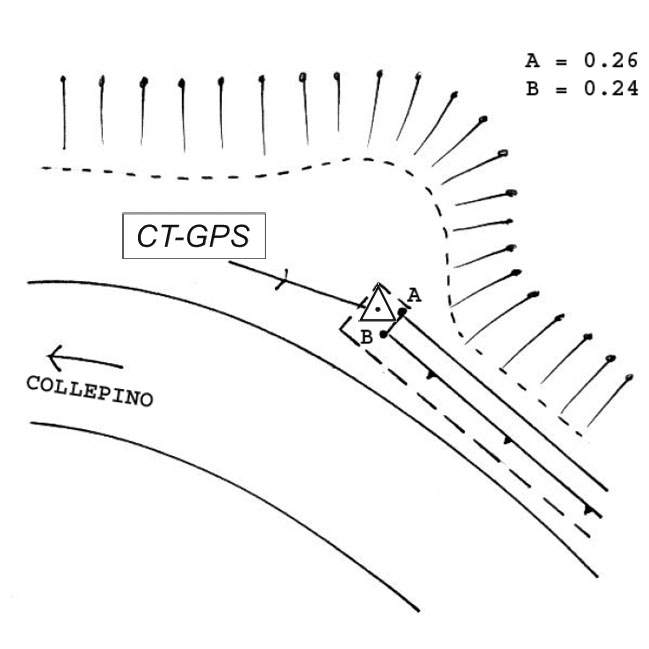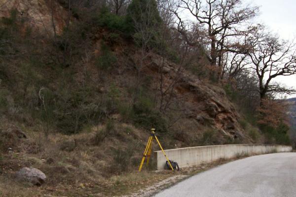 Centrino metallico infisso sulla fondazione in calcestruzzo del muro di sostegno a monte della strada che da Collepino scende a valle verso il Torrente Chiona.
