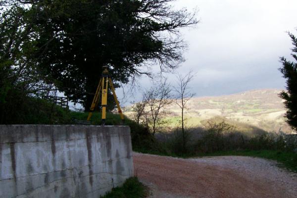 Centrino metallico infisso sull'estremità ovest del muro di sostegno in calcestruzzo, in località Giove.