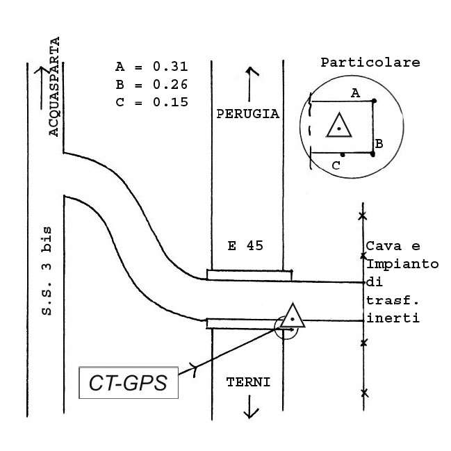 Centrino metallico infisso sullo spigolo sud-est della spalla del cavalcavia della superstrada E45, in località La Fornace.