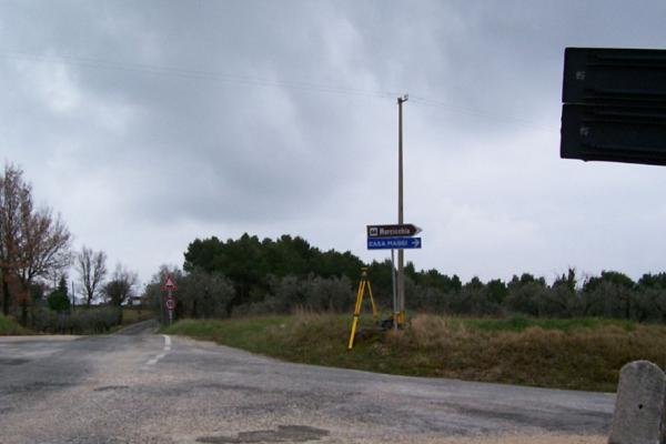 Centrino metallico infisso sullo spigolo nord-est del pozzetto in calcestruzzo, al bivio per Morcicchia, al km 3+100 della S.P. 453 di Castel Ritaldi.