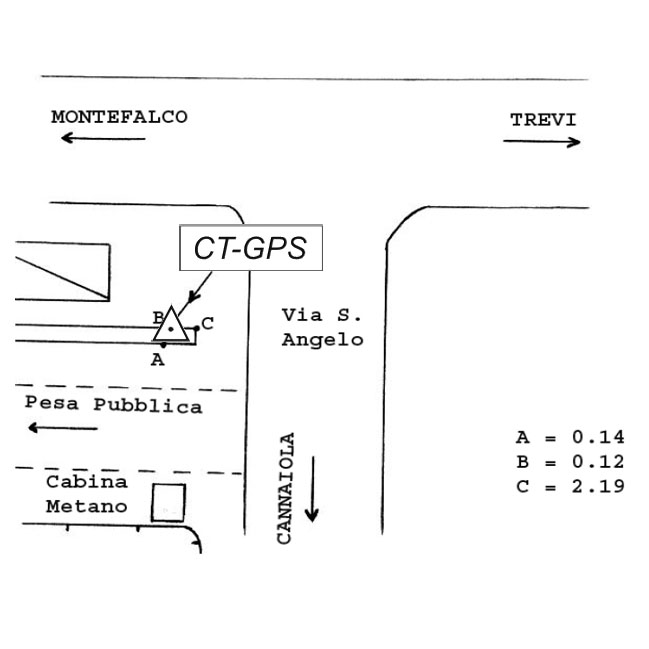 | materializzazione | Centrino metallico infisso sulla sommità, lato est, del muro di contenimento in calcestruzzo della pesa pubblica, in Via Sant'Angelo, a Cannaiola. |
