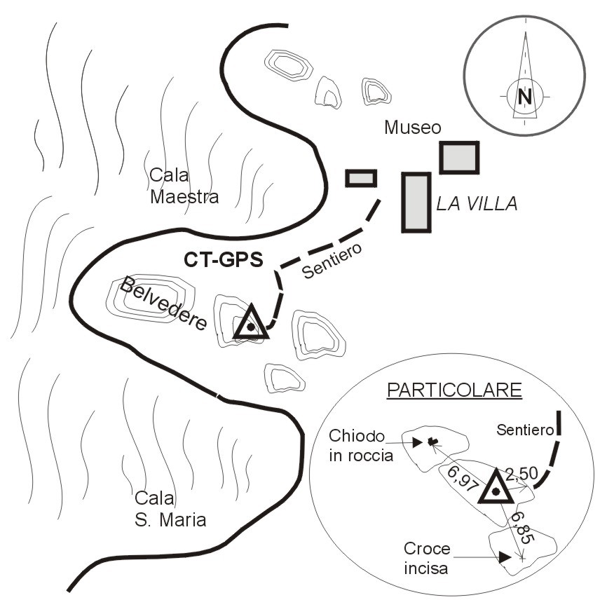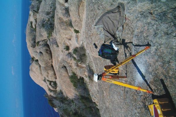 Centrino in acciaio inox del tipo "GPS C" infisso su roccia affiorantwe nella zona di "Il Belvedere", ad Ovest dell'ìsola di Montecristo
