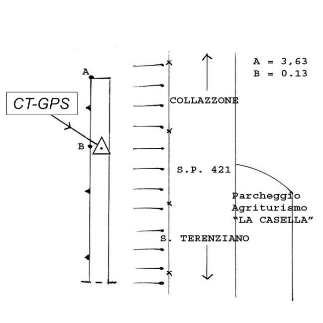 | materializzazione | Centrino metallico infisso sul muro di sostegno in calcestruzzo, al Km 11+400 della S.P. 421. |