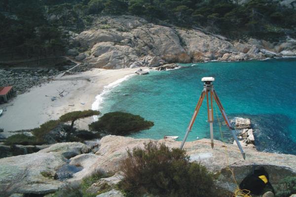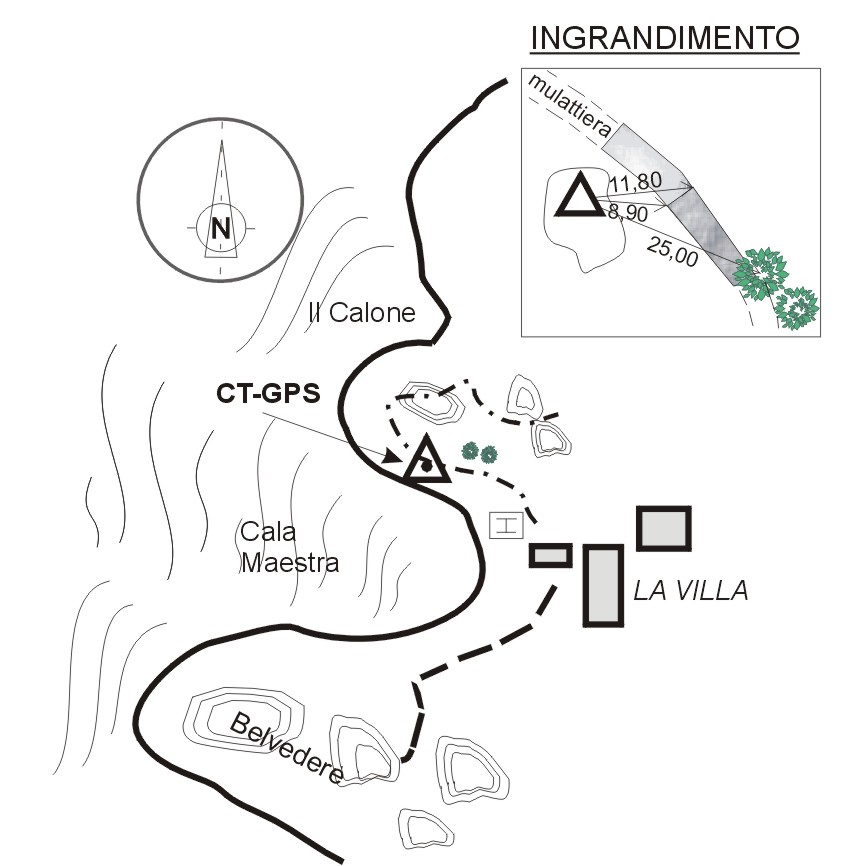 Centrino in acciaio inox del tipo "GPS C" infisso su roccia affiorante.