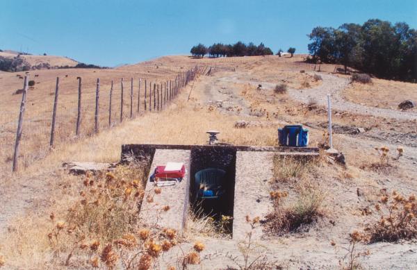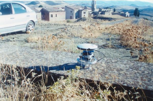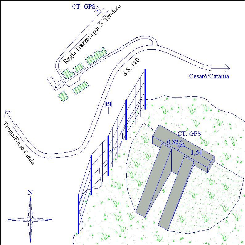 | materializzazione | Centrino in acciaio inox del tipo "GPS C" infisso nella sommità della testata di un manufatto in calcestruzzo situato in posizione decentrata all'interno dell'ampia carreggiata di una regia trazzera. |
