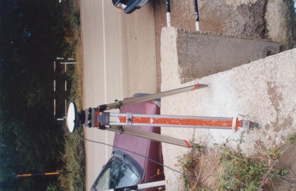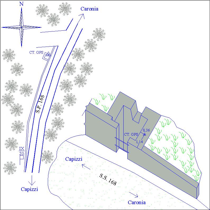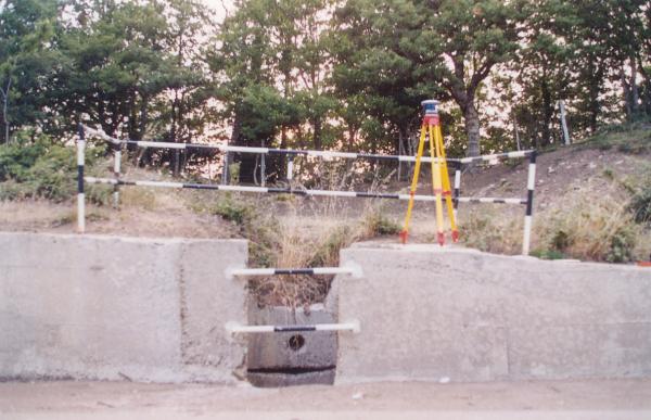 Centrino in acciaio inox del tipo "GPS C" infisso nella testata di un'opera di presidio idraulico, situata lungo la S.P.168 in aderenza a una cunetta di scolo longitudinale, e precisamente nella sommità di una delle pareti in calcestruzzo che formano una camera di raccolta delle acque di carreggiata e di pendio .