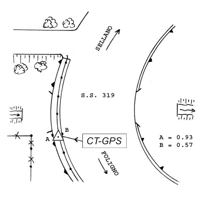 | materializzazione | Centrino metallico infisso sulla spalla nord-ovest in calcestruzzo del ponte San Lazzaro sul fosso Carbonaia, al Km 8+100 della S.S. 319 di Sellano. |