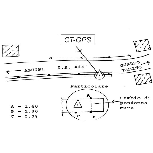 Centrino metallico infisso sulla sommità del muro di sostegno, al km 12+600 della S.S. 444, in località Morano Madonnuccia.