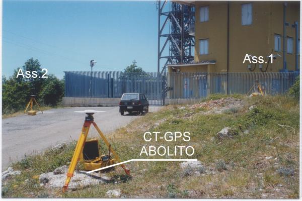 Centrino del tipo "GPS D" infisso su blocco in calcestruzzo, sito a livello del suolo, a sinistra del cancello di accesso alla stazione telefonica ubicata sul Monte Vitalba.