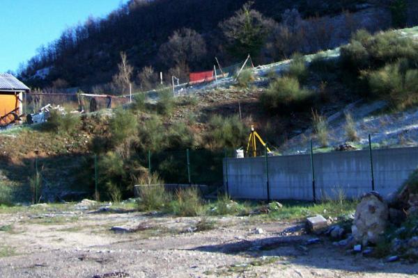 | materializzazione | Centrino metallico infisso sulla sommità, lato nord, del muro di sostegno in calcestruzzo del piazzale recintato, in località Volperino. |