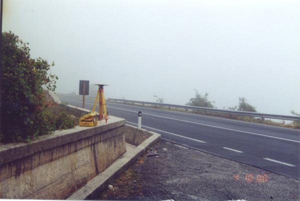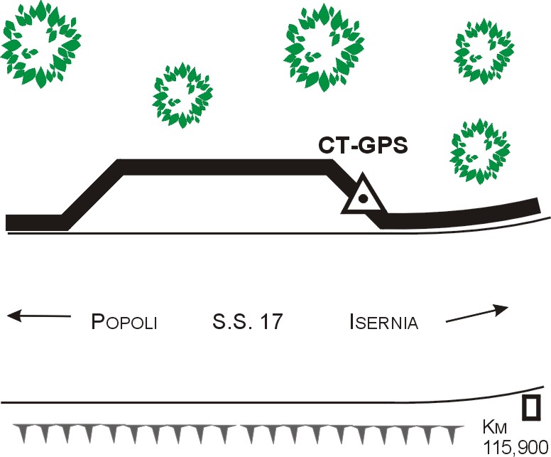 | materializzazione | Centrino in acciaio inox del tipo "GPS da livellazione" infisso sul muro di sostegno in cemento della piazzola a margine della strada. |