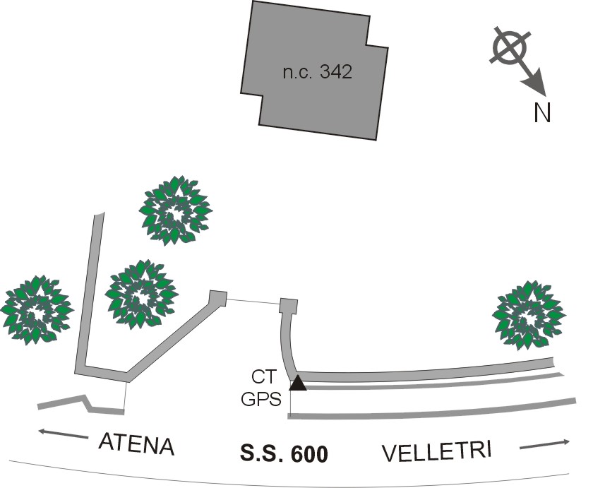 | materializzazione | Centrino in acciaio inox del tipo "GPS da livellazione" infisso sul muro del canale di scolo tra la S.S. e la casa al numero civico 342 di via Romana, a destra del ponticello dell'accesso. |