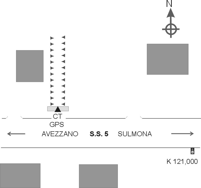| materializzazione | Centrino in acciaio inox del tipo "GPS da livellazione" infisso sulla sommità della spalletta del ponticello stradale lungo il lato nord della S.S 5, all'altezza del Km 120,920 circa. |