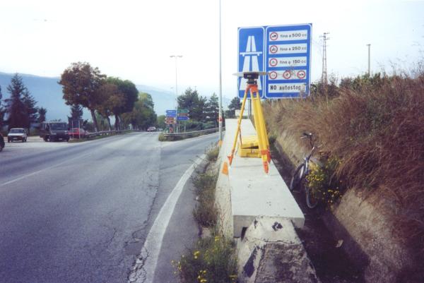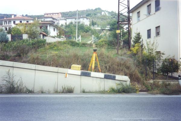 | materializzazione | Centrino in acciaio inox del tipo "GPS da livellazione" fissato sul muro in cemento al margine della strada. |