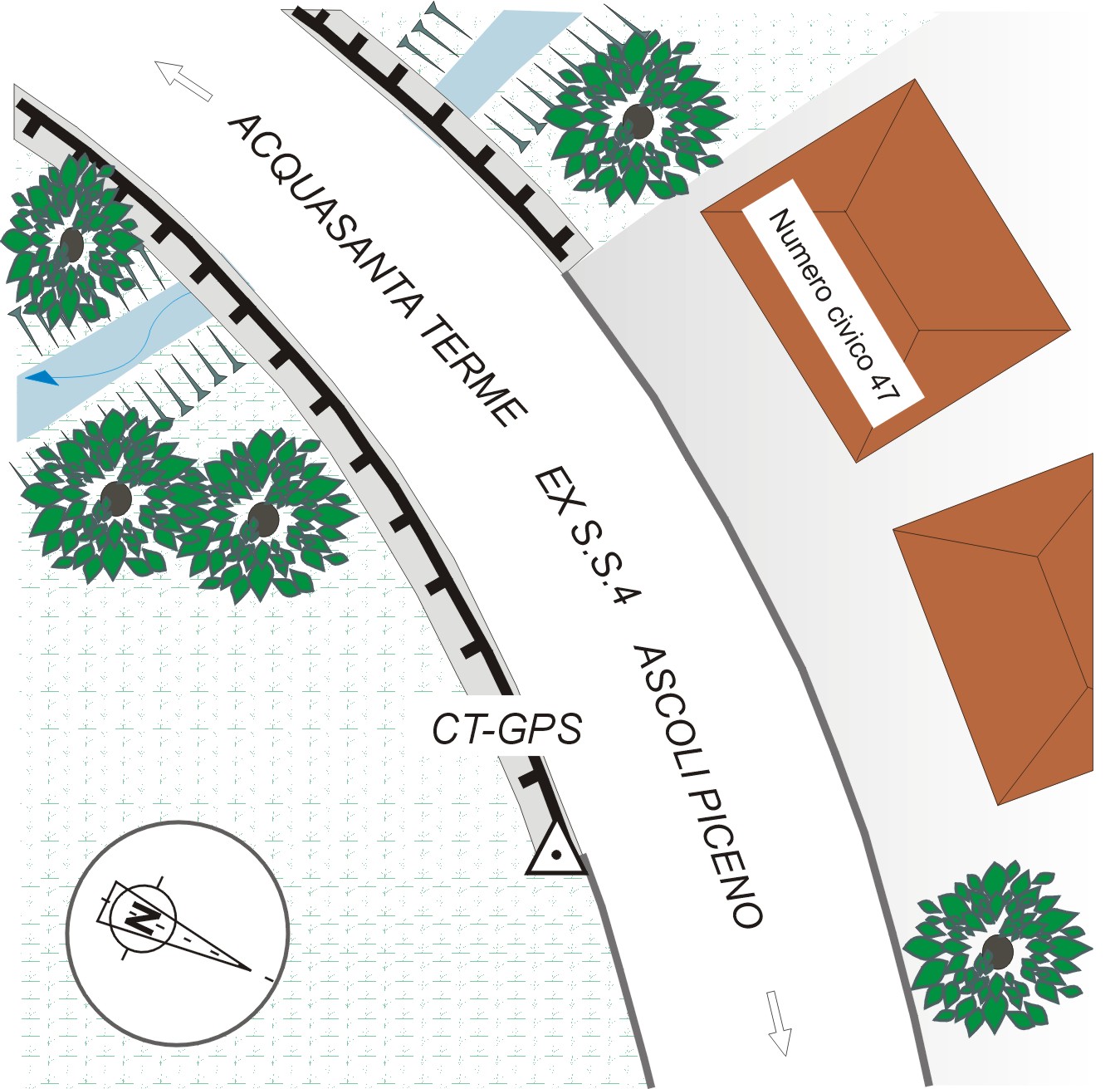 | materializzazione | Centrino del tipo GPS da livellazione infisso sul muro a valle del torrente, a sinistra in direzione Acquasanta Terme. |
