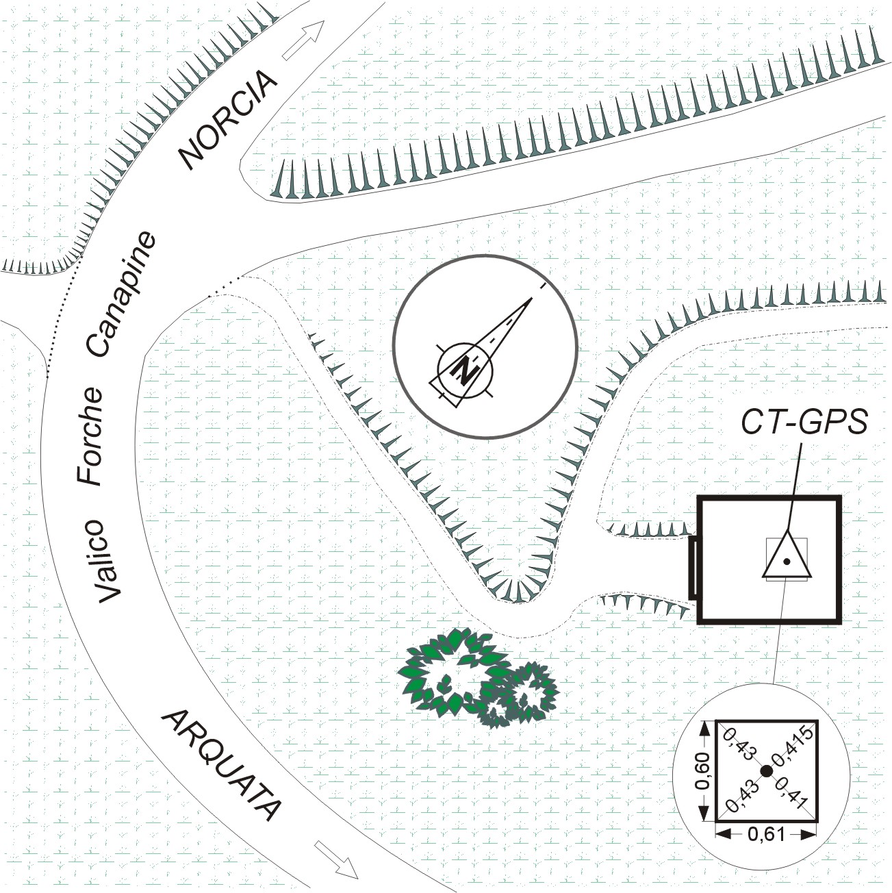 | materializzazione | Centrino del tipo GPS C fissato sul serbatoio idrico situato al valico delle Forche Canapine. |